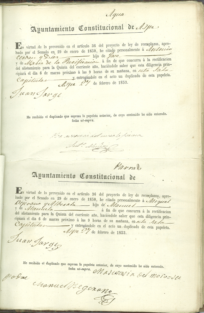 Actas de Alistamiento, 1853