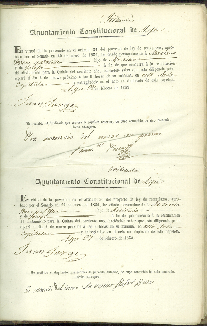 Actas de Alistamiento, 1853