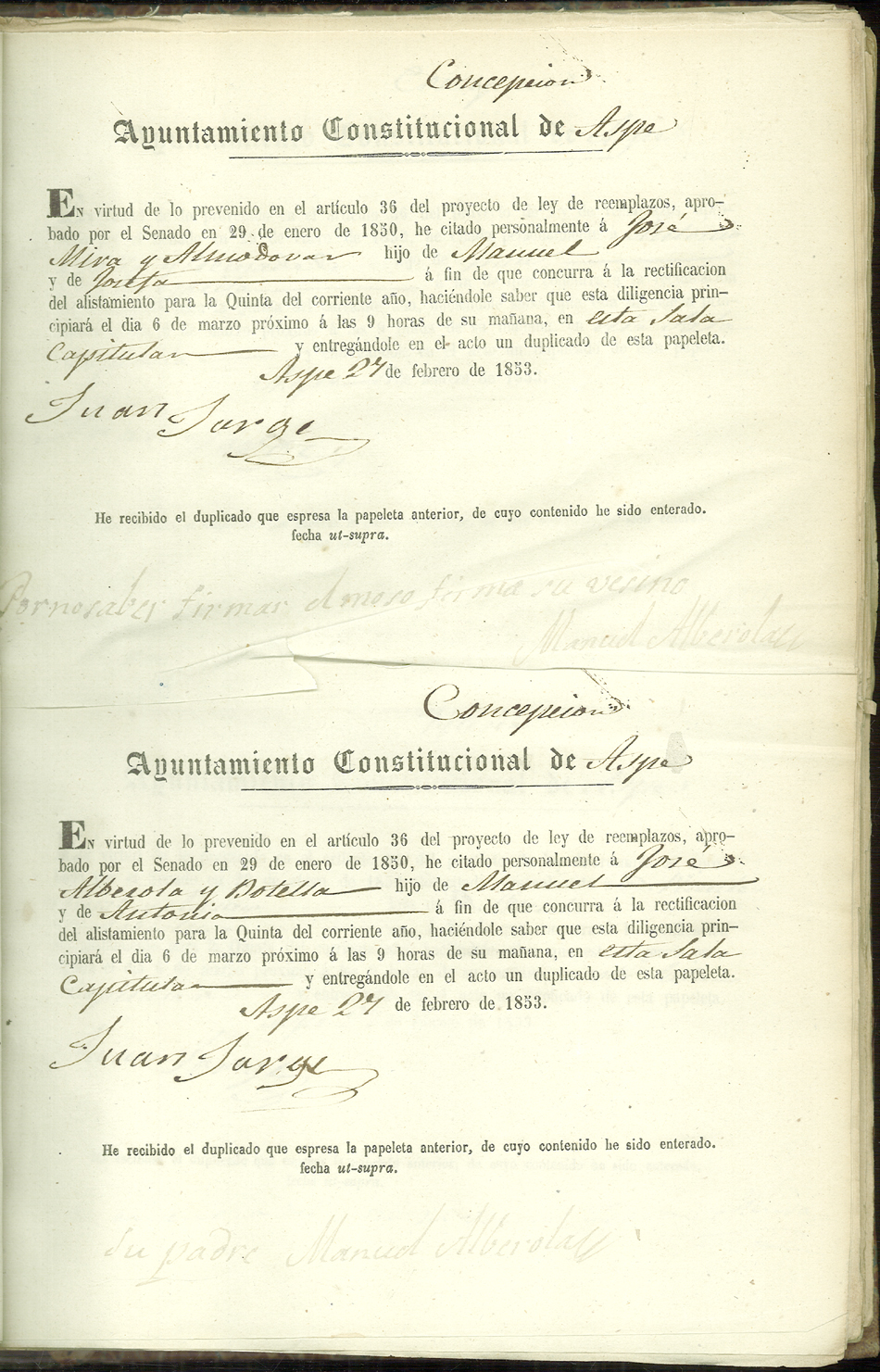 Actas de Alistamiento, 1853