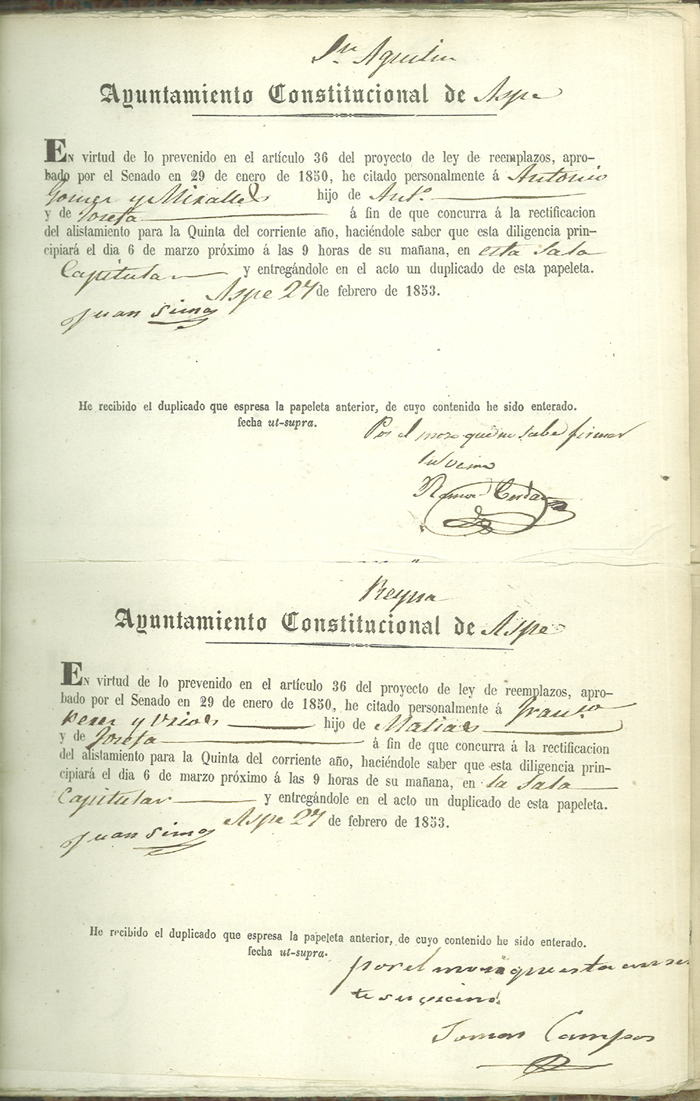 Actas de Alistamiento, 1853