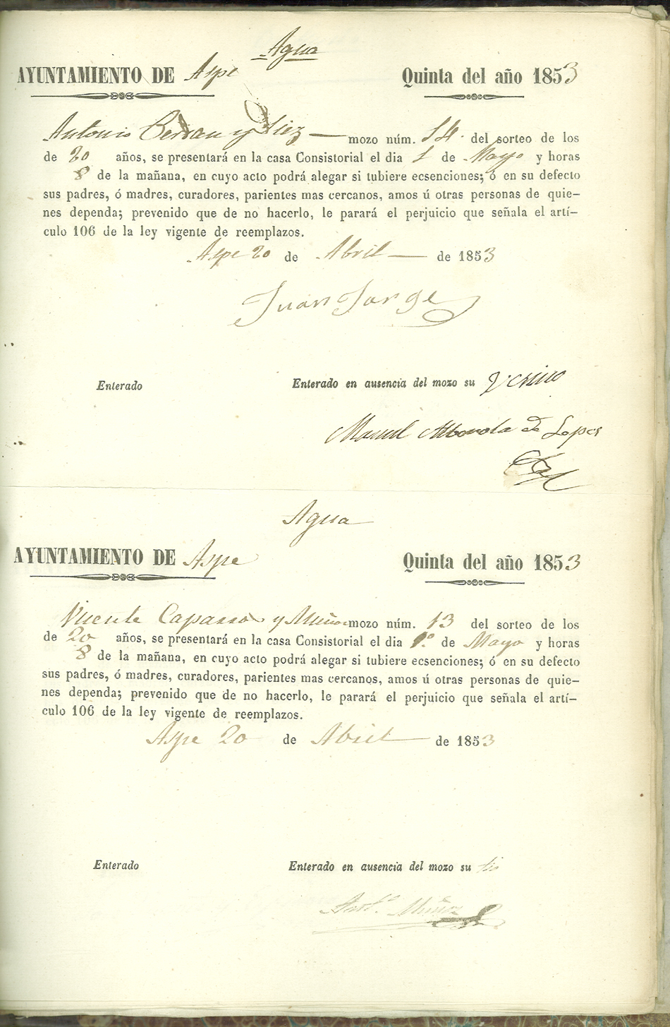 Actas de Alistamiento, 1853