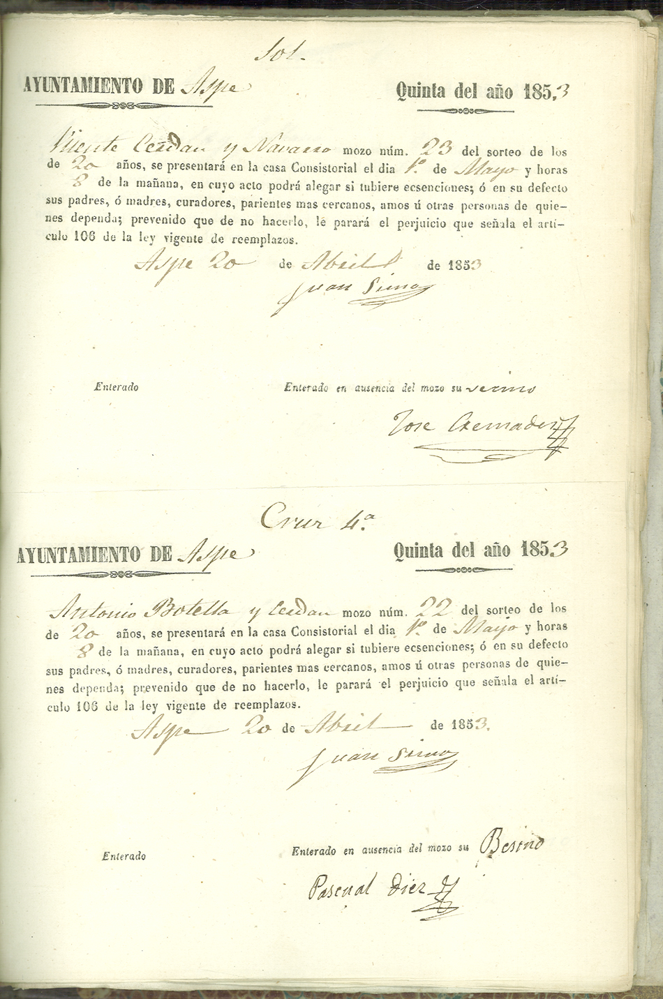 Actas de Alistamiento, 1853