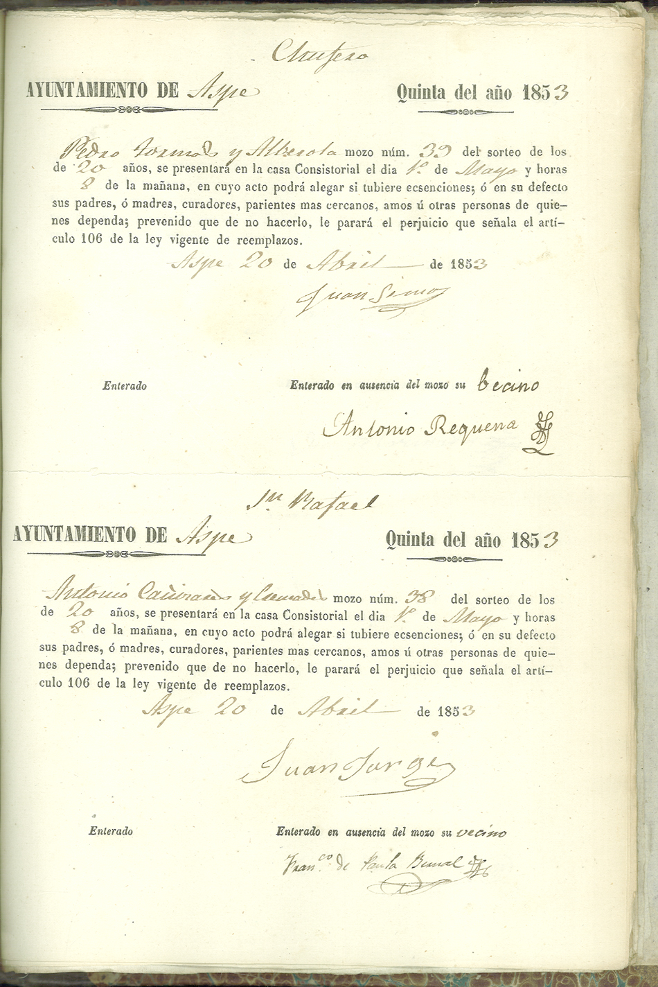Actas de Alistamiento, 1853