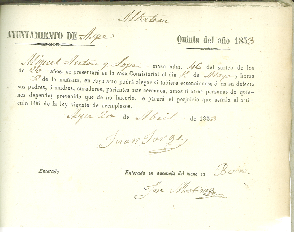 Actas de Alistamiento, 1853