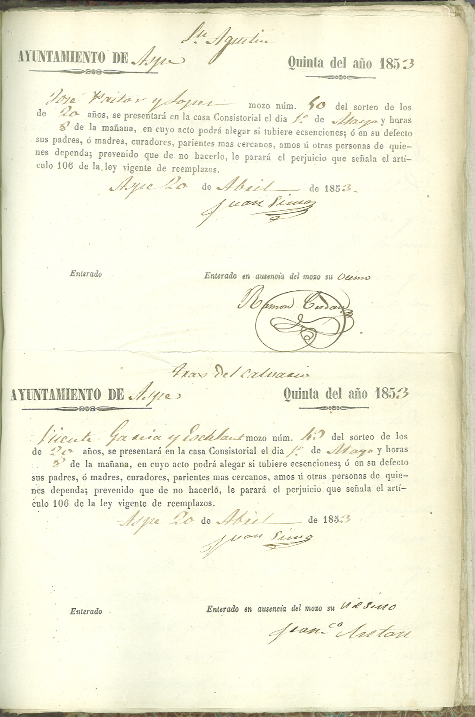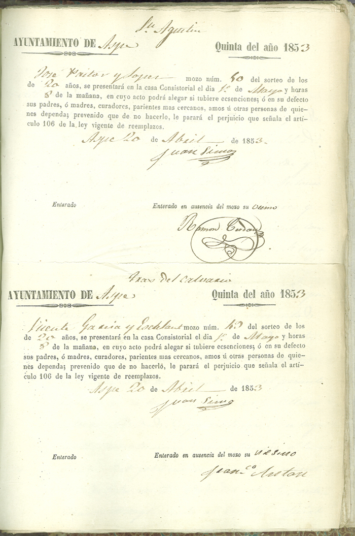 Actas de Alistamiento, 1853