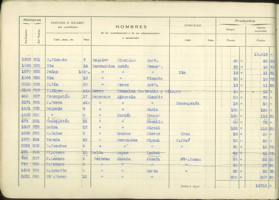 Padrón urbano de edificios y solares, 1930