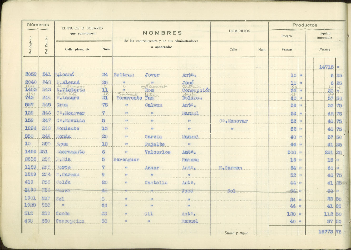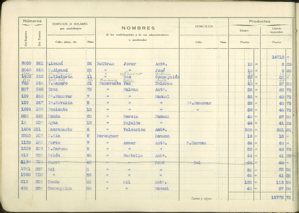 Padrón urbano de edificios y solares, 1930