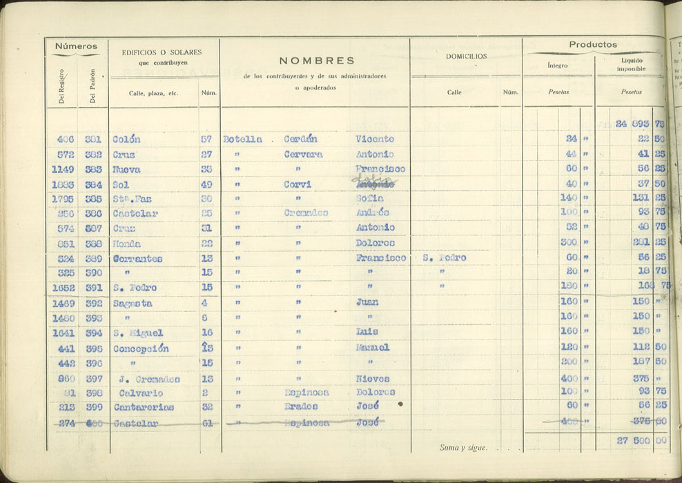 Padrón urbano de edificios y solares, 1930