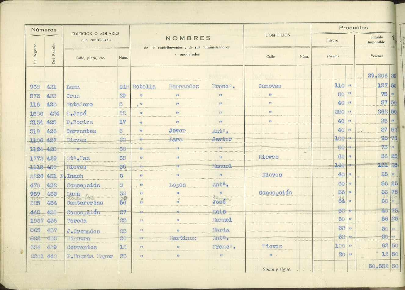 Padrón urbano de edificios y solares, 1930