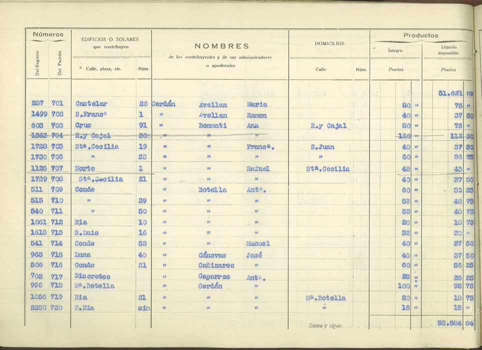Padrón urbano de edificios y solares, 1930