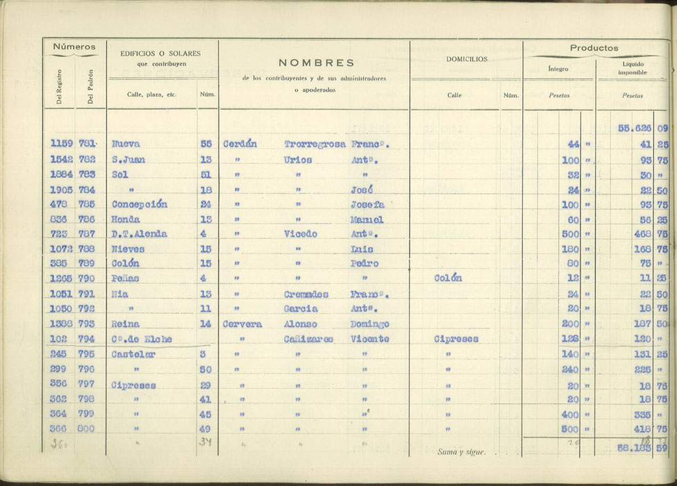 Padrón urbano de edificios y solares, 1930