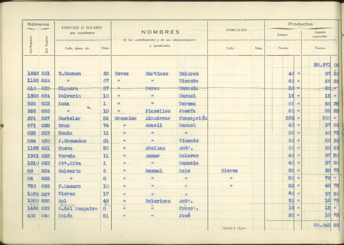 Padrón urbano de edificios y solares, 1930
