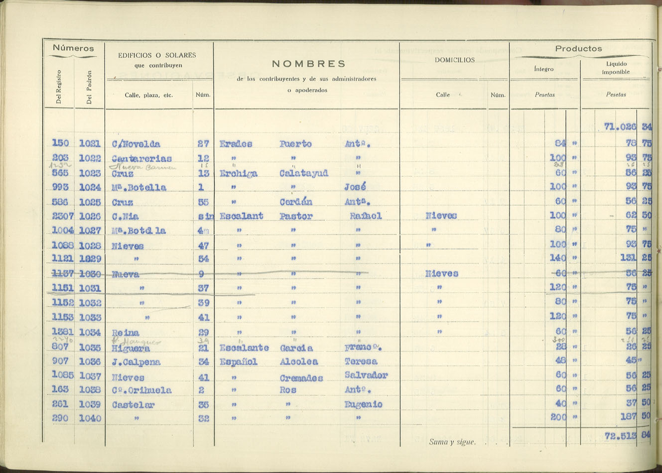 Padrón urbano de edificios y solares, 1930
