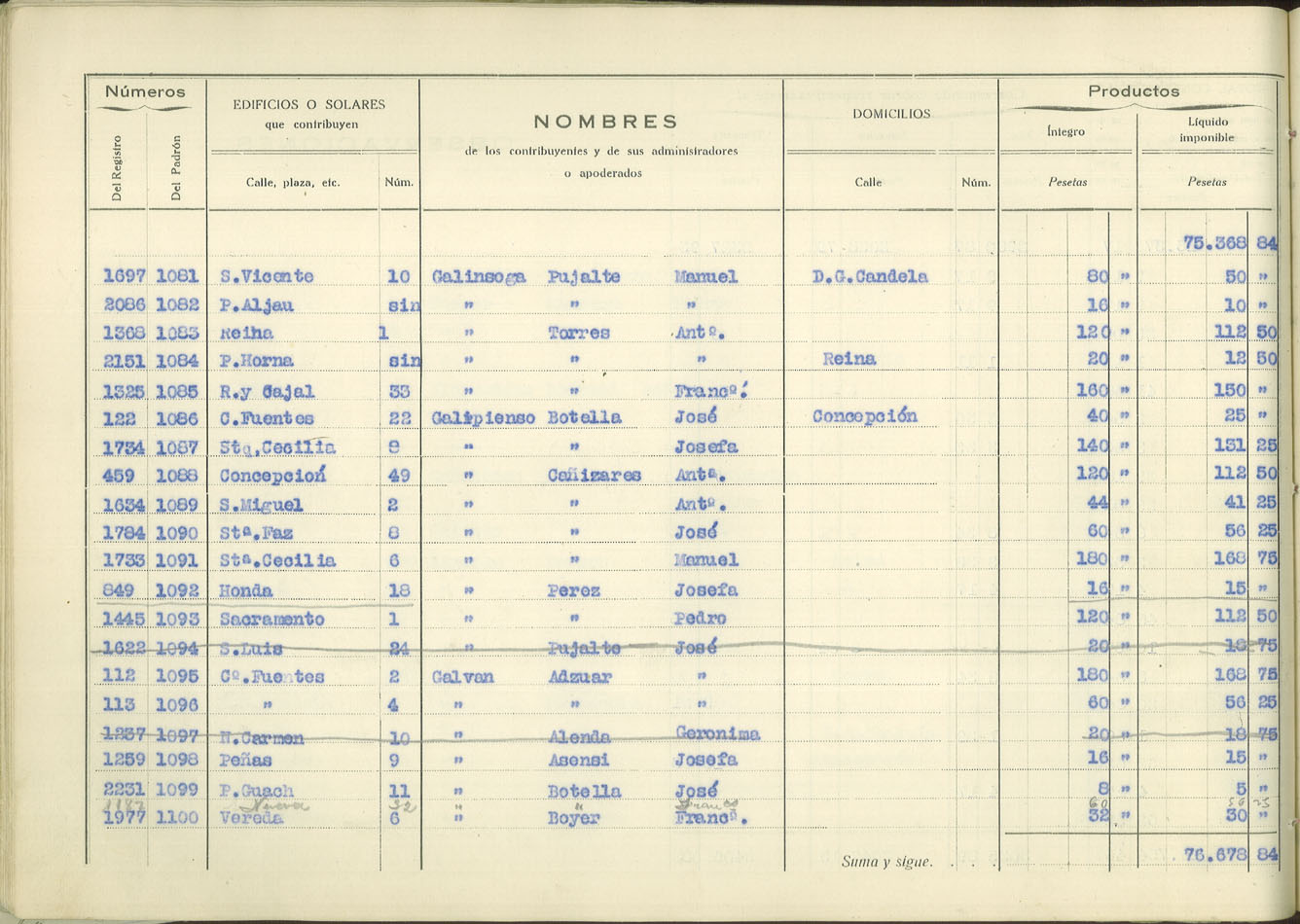 Padrón urbano de edificios y solares, 1930