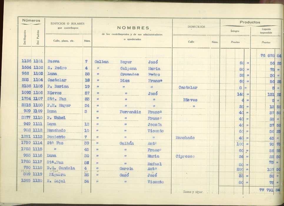 Padrón urbano de edificios y solares, 1930