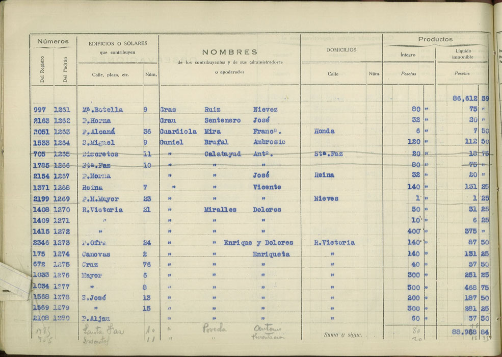 Padrón urbano de edificios y solares, 1930