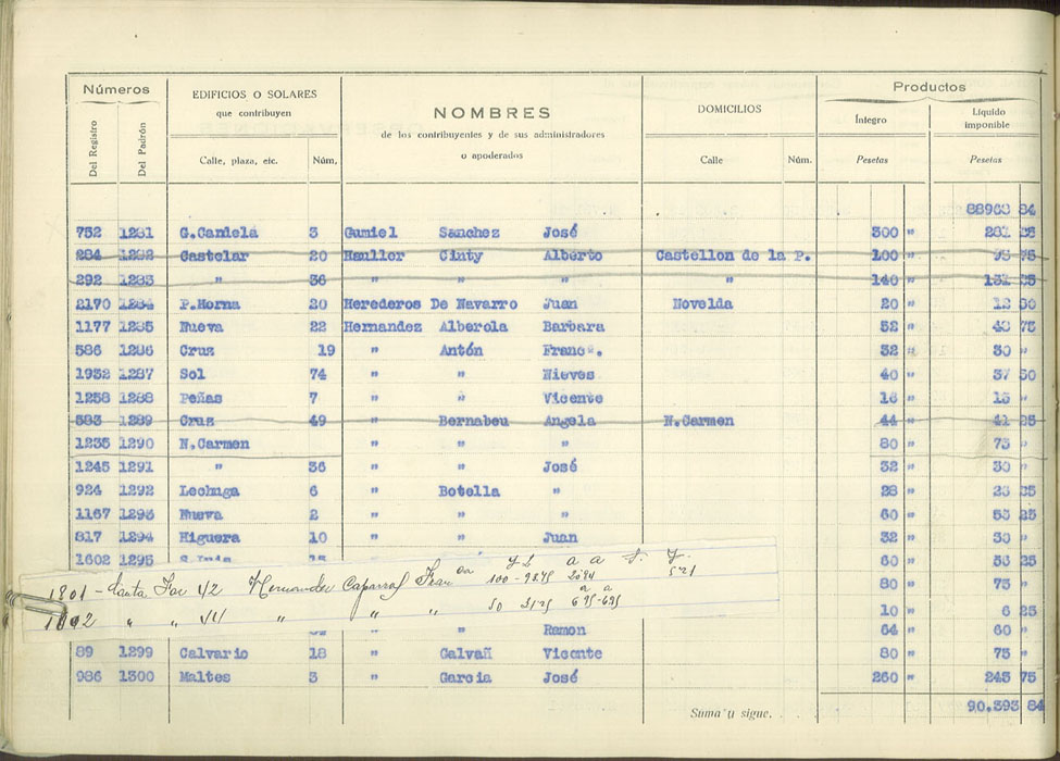 Padrón urbano de edificios y solares, 1930