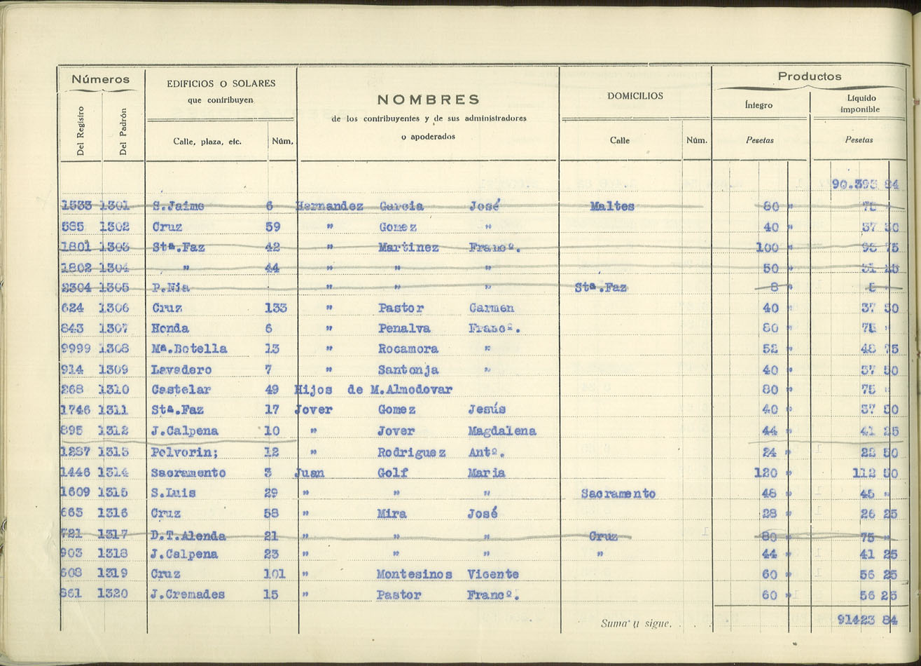 Padrón urbano de edificios y solares, 1930