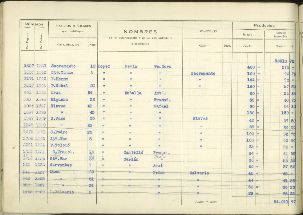 Padrón urbano de edificios y solares, 1930