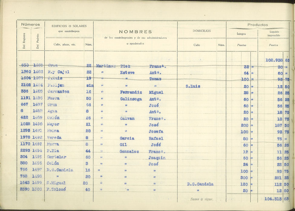 Padrón urbano de edificios y solares, 1930