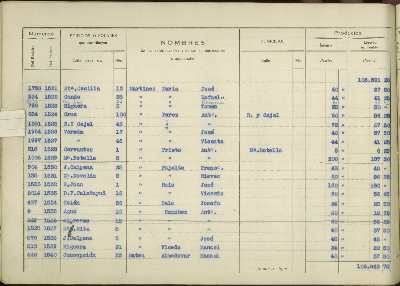 Padrón urbano de edificios y solares, 1930
