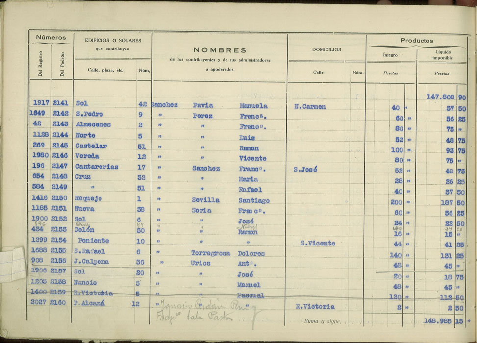 Padrón urbano de edificios y solares, 1930