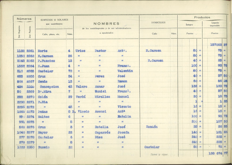 Padrón urbano de edificios y solares, 1930