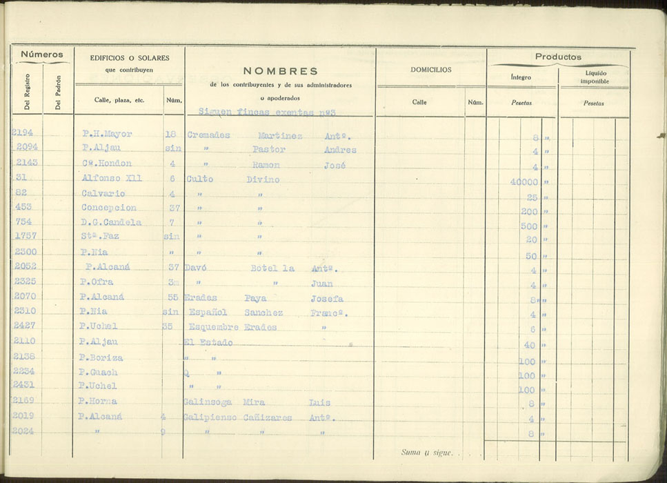 Padrón urbano de edificios y solares, 1930