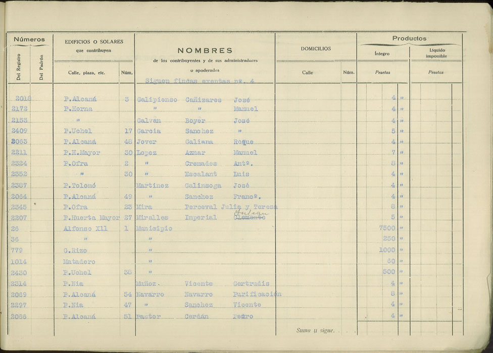 Padrón urbano de edificios y solares, 1930