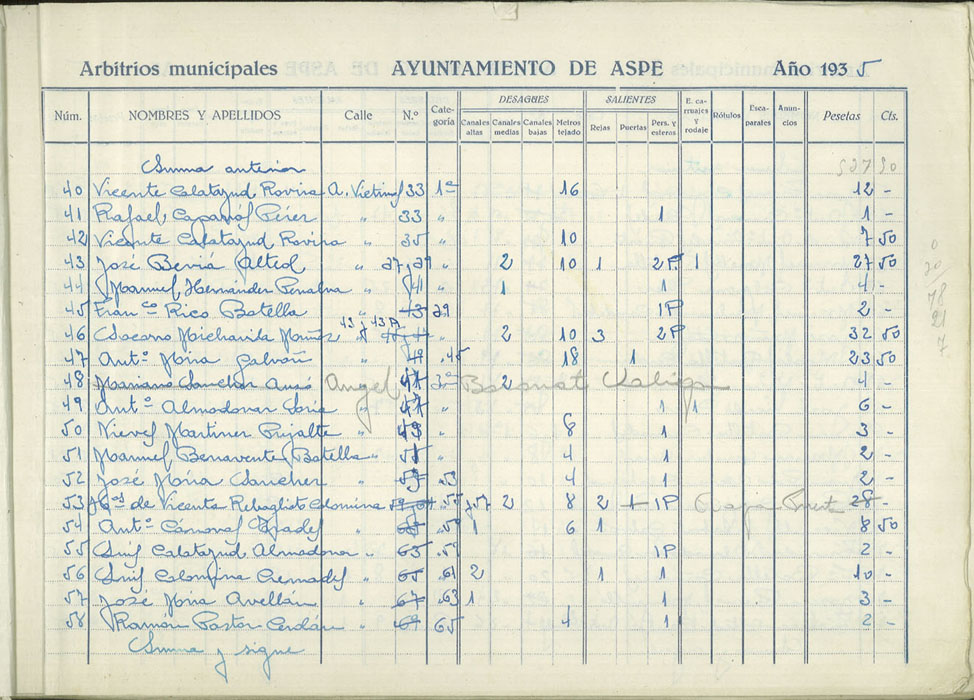 Padrón de personas sujetas al pago de arbitrios municipales, 1935