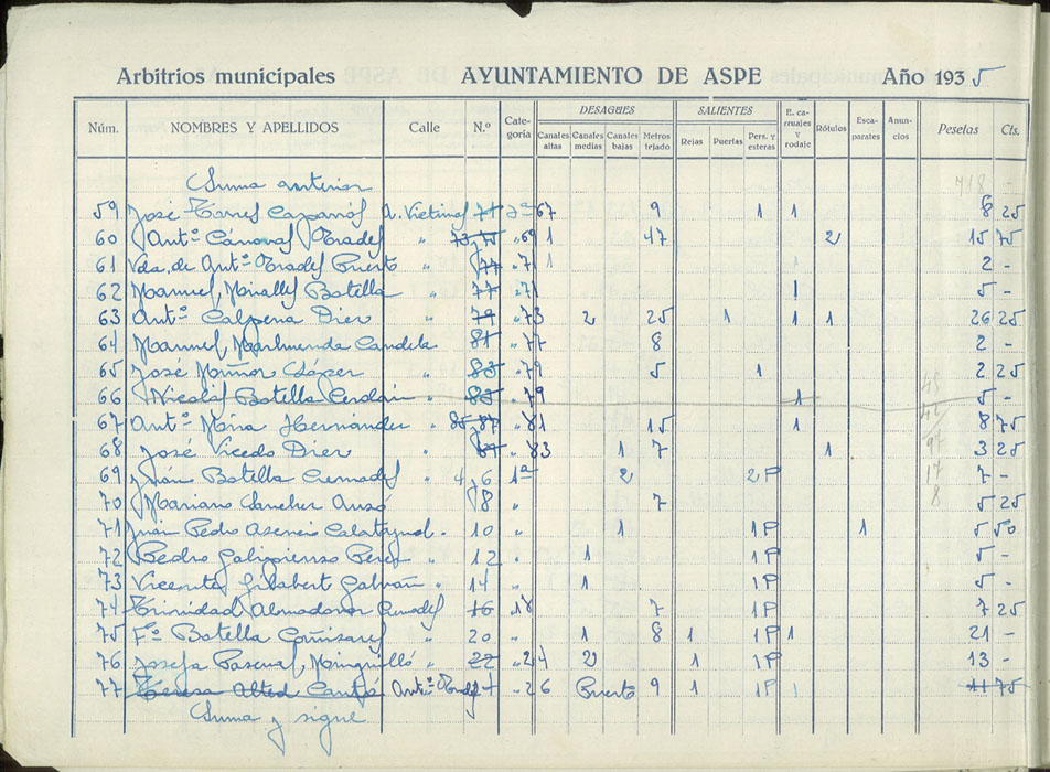 Padrón de personas sujetas al pago de arbitrios municipales, 1935