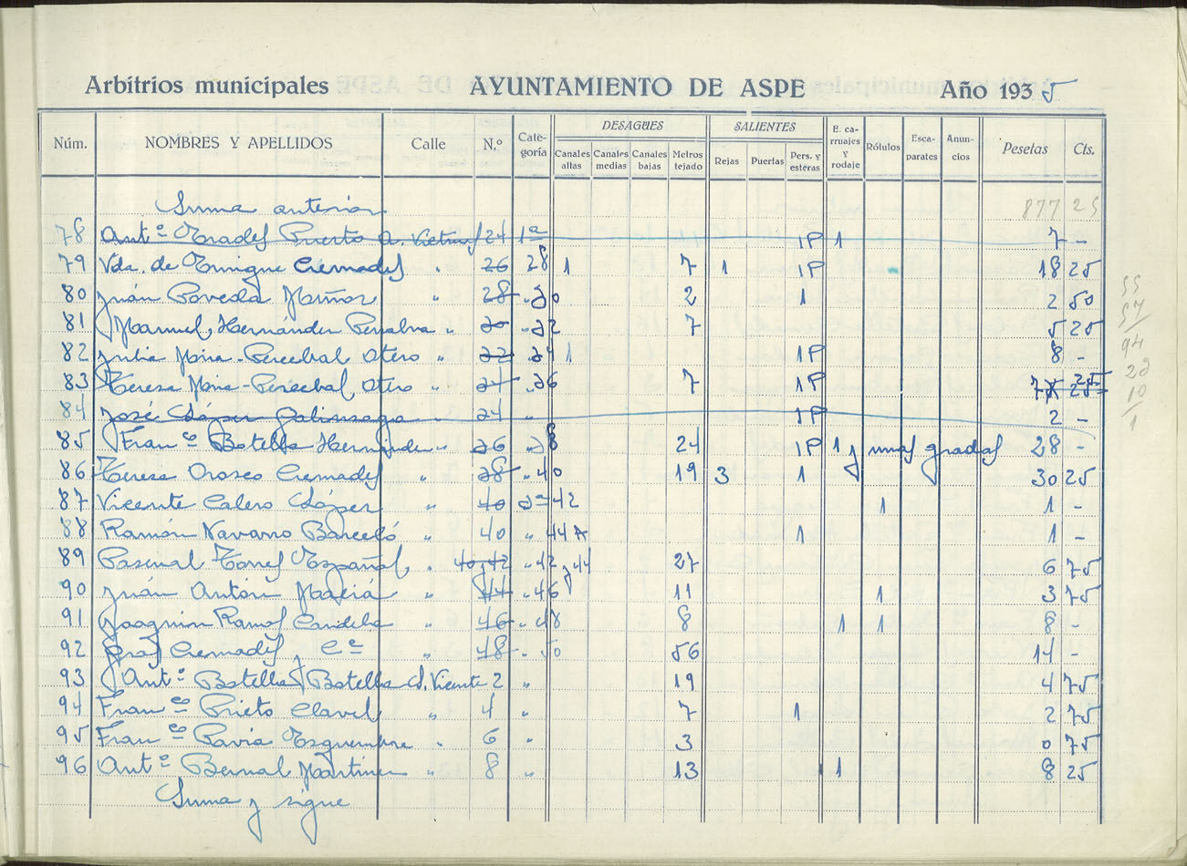 Padrón de personas sujetas al pago de arbitrios municipales, 1935