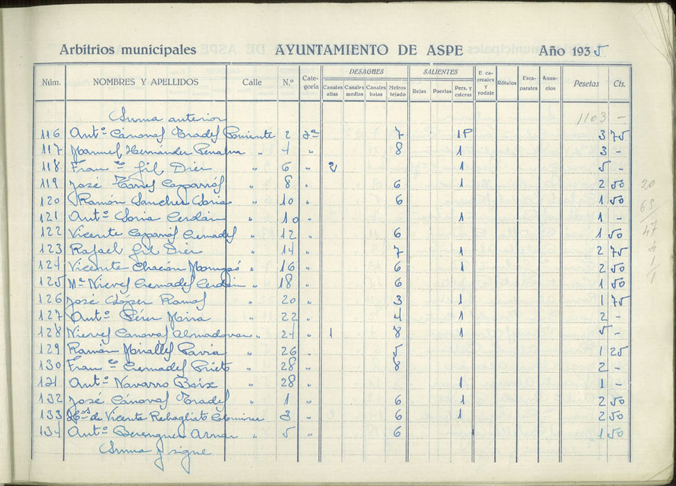 Padrón de personas sujetas al pago de arbitrios municipales, 1935