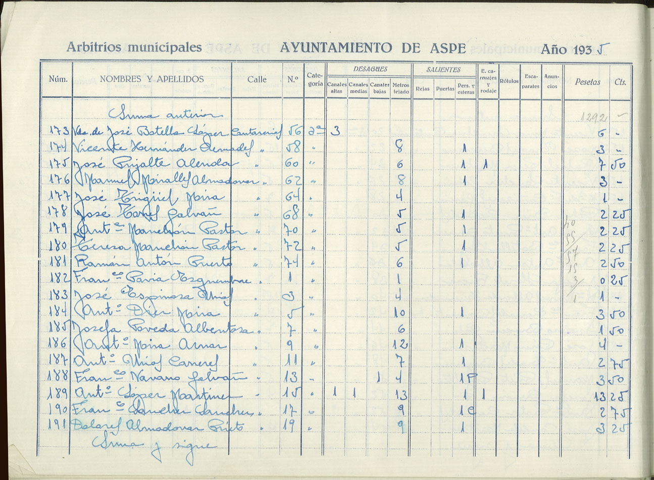 Padrón de personas sujetas al pago de arbitrios municipales, 1935