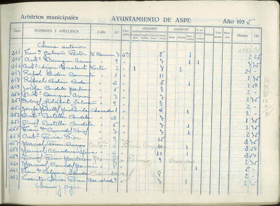 Padrón de personas sujetas al pago de arbitrios municipales, 1935