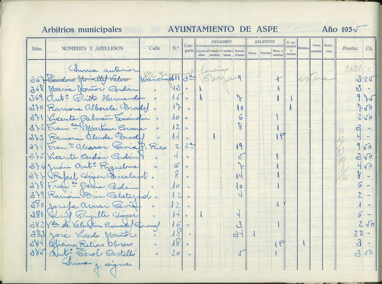 Padrón de personas sujetas al pago de arbitrios municipales, 1935