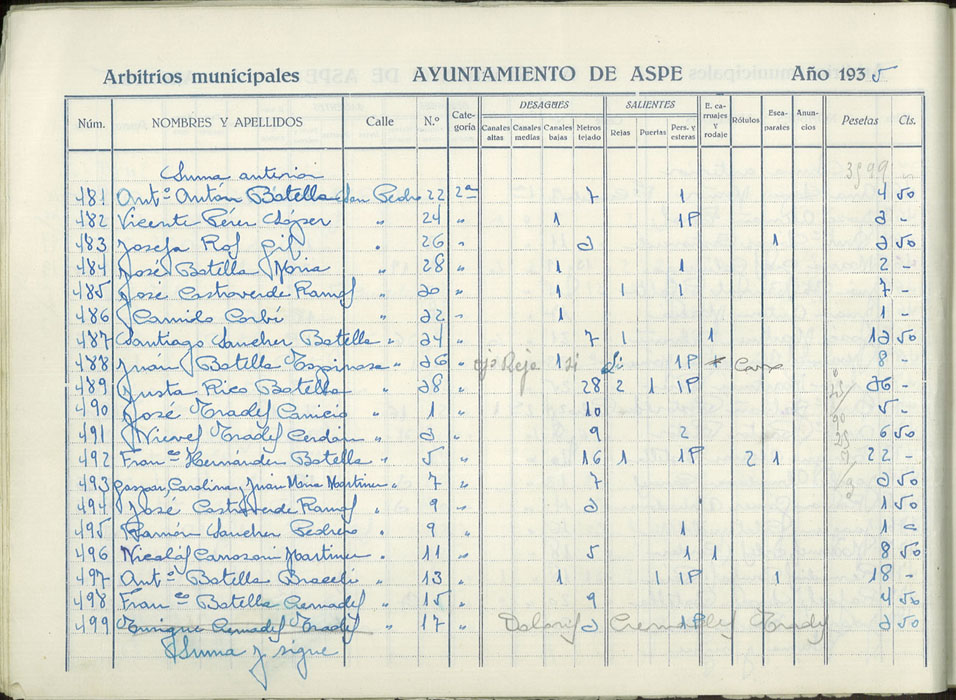 Padrón de personas sujetas al pago de arbitrios municipales, 1935
