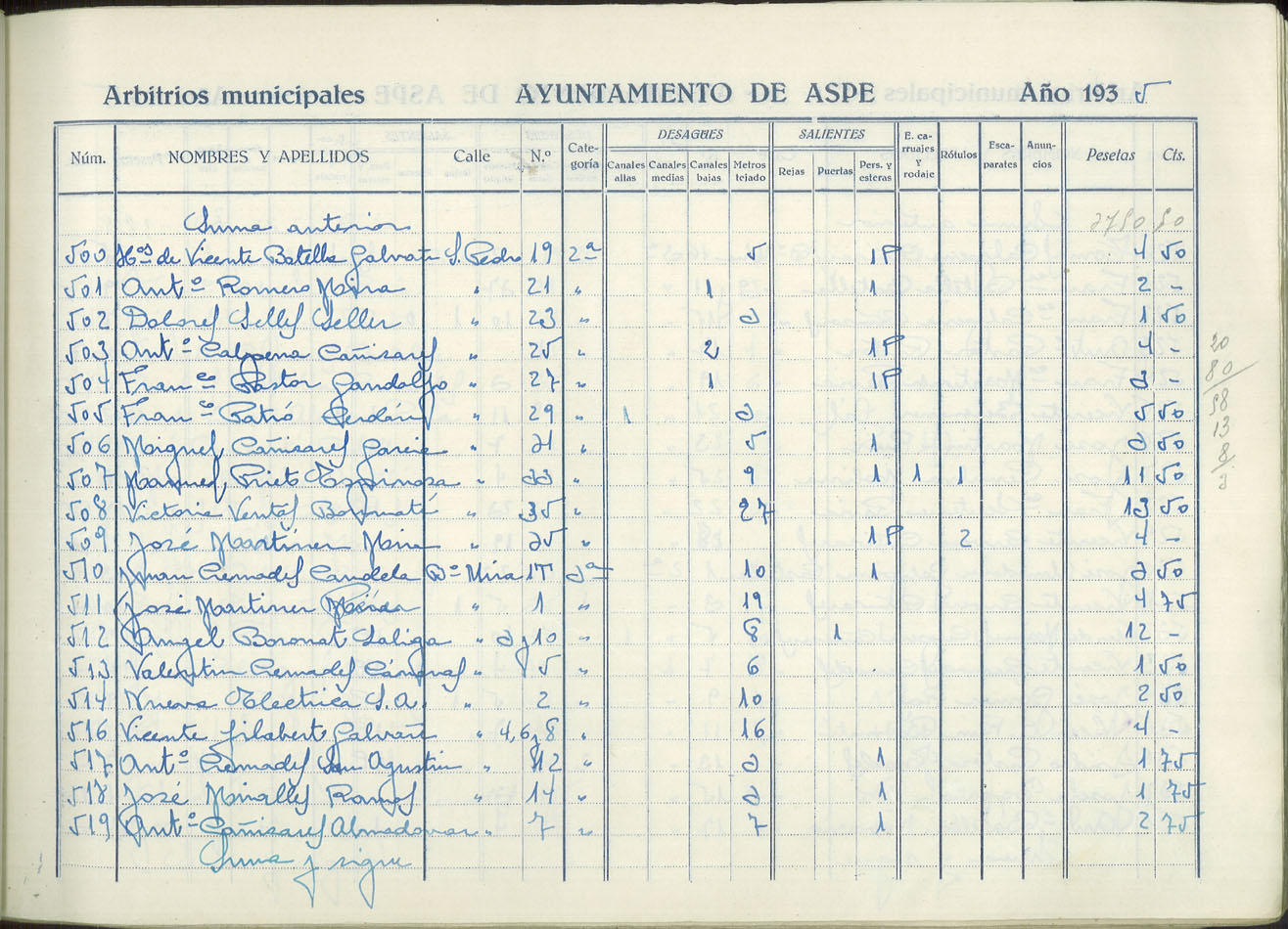 Padrón de personas sujetas al pago de arbitrios municipales, 1935