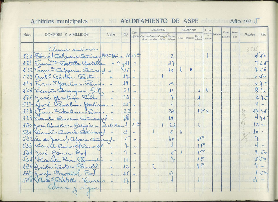 Padrón de personas sujetas al pago de arbitrios municipales, 1935