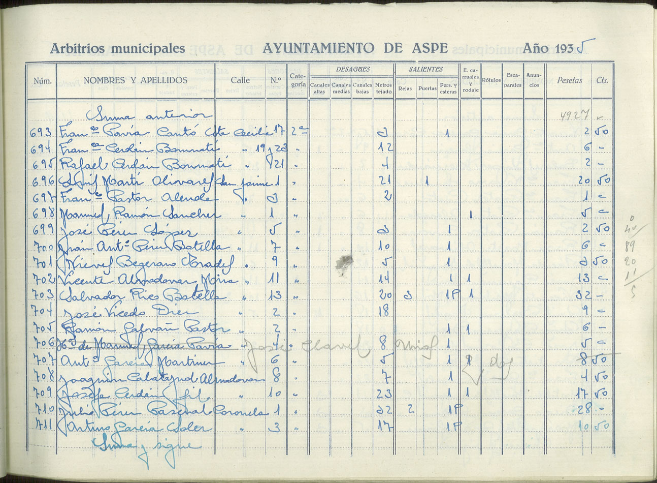 Padrón de personas sujetas al pago de arbitrios municipales, 1935