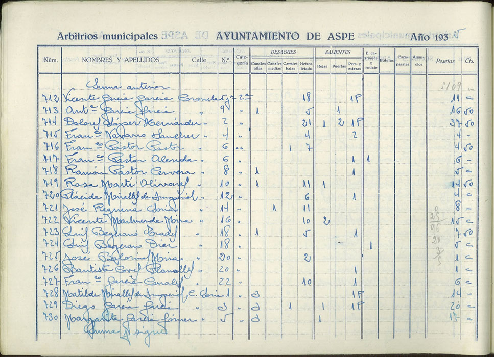 Padrón de personas sujetas al pago de arbitrios municipales, 1935