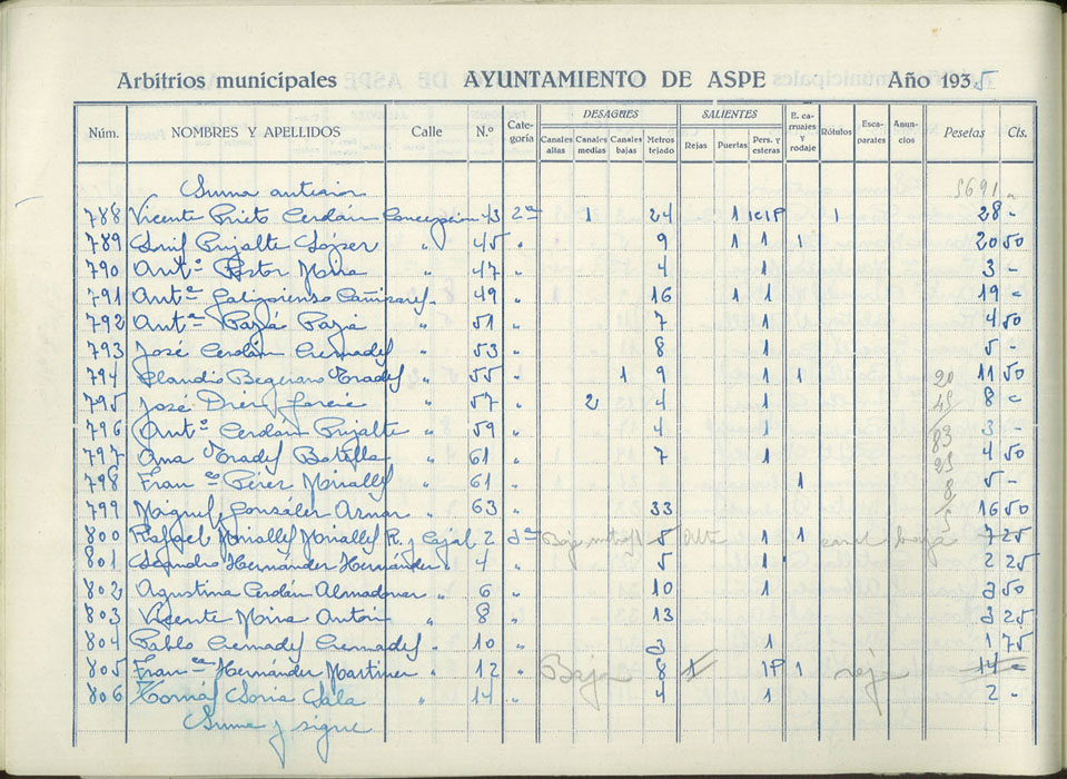 Padrón de personas sujetas al pago de arbitrios municipales, 1935