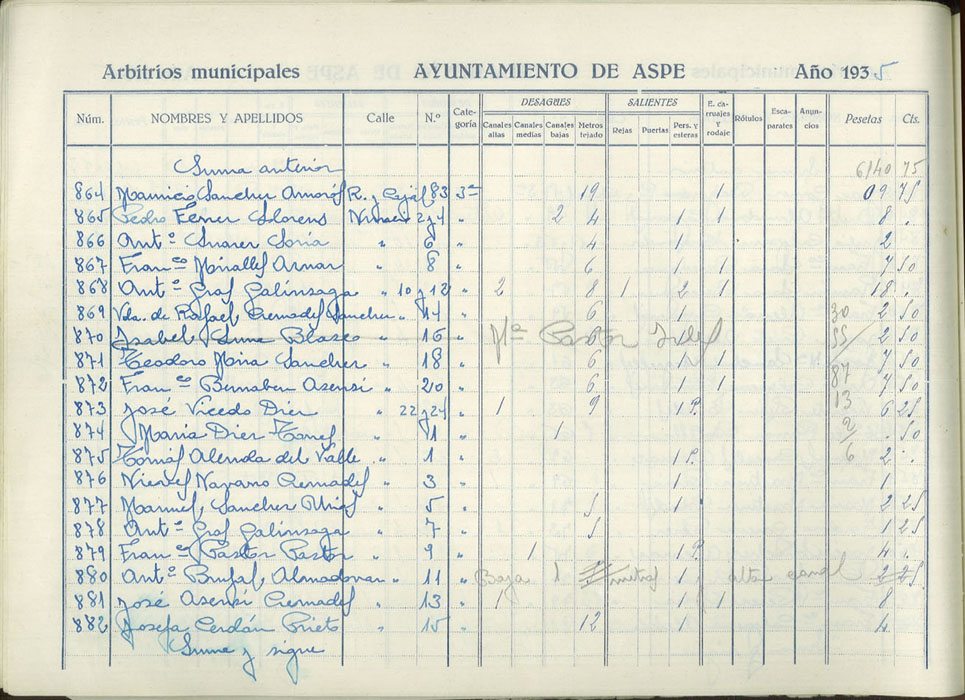 Padrón de personas sujetas al pago de arbitrios municipales, 1935
