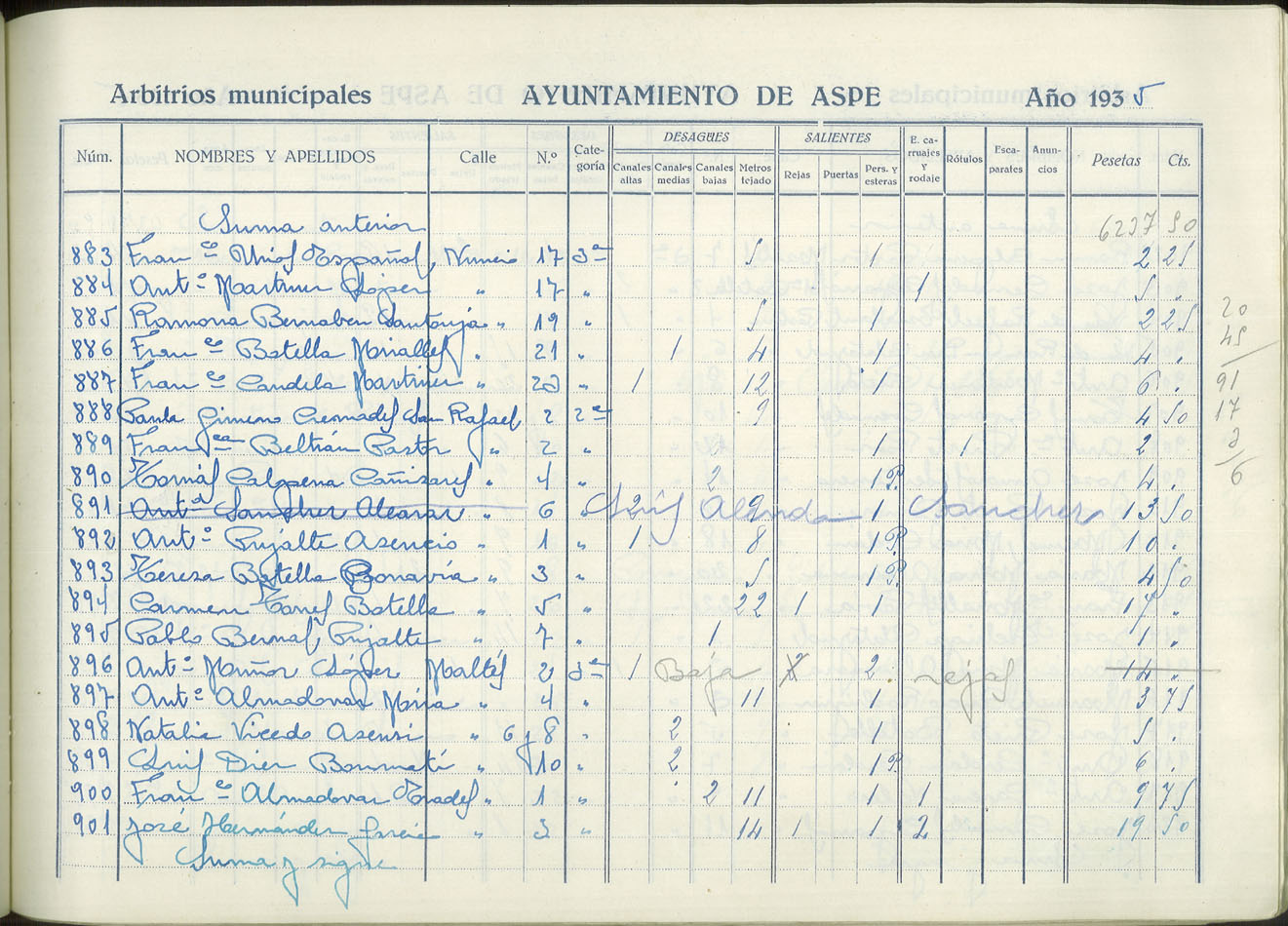 Padrón de personas sujetas al pago de arbitrios municipales, 1935