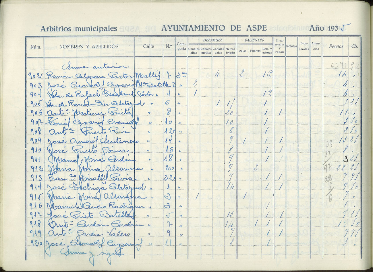 Padrón de personas sujetas al pago de arbitrios municipales, 1935