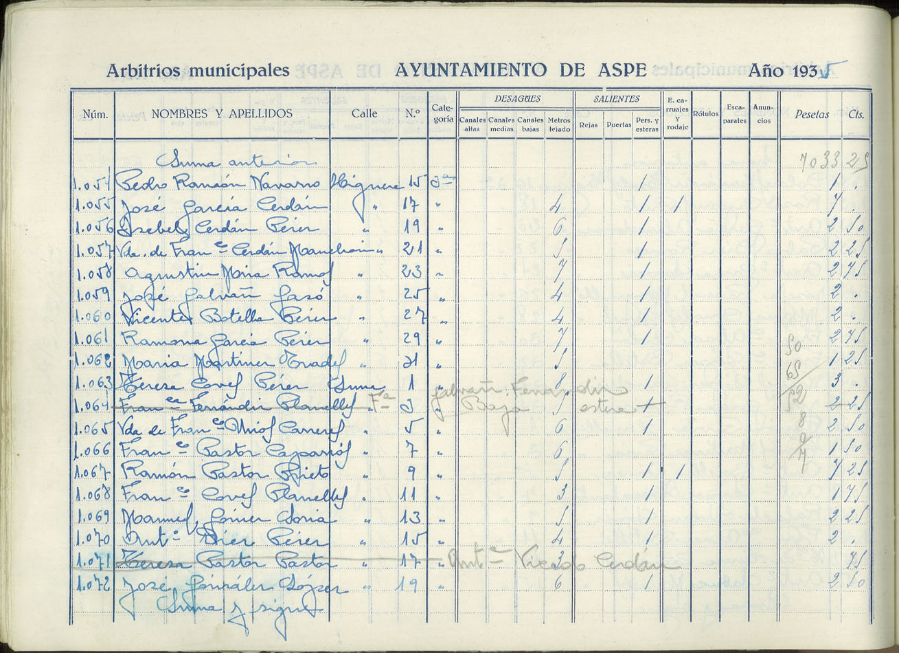 Padrón de personas sujetas al pago de arbitrios municipales, 1935