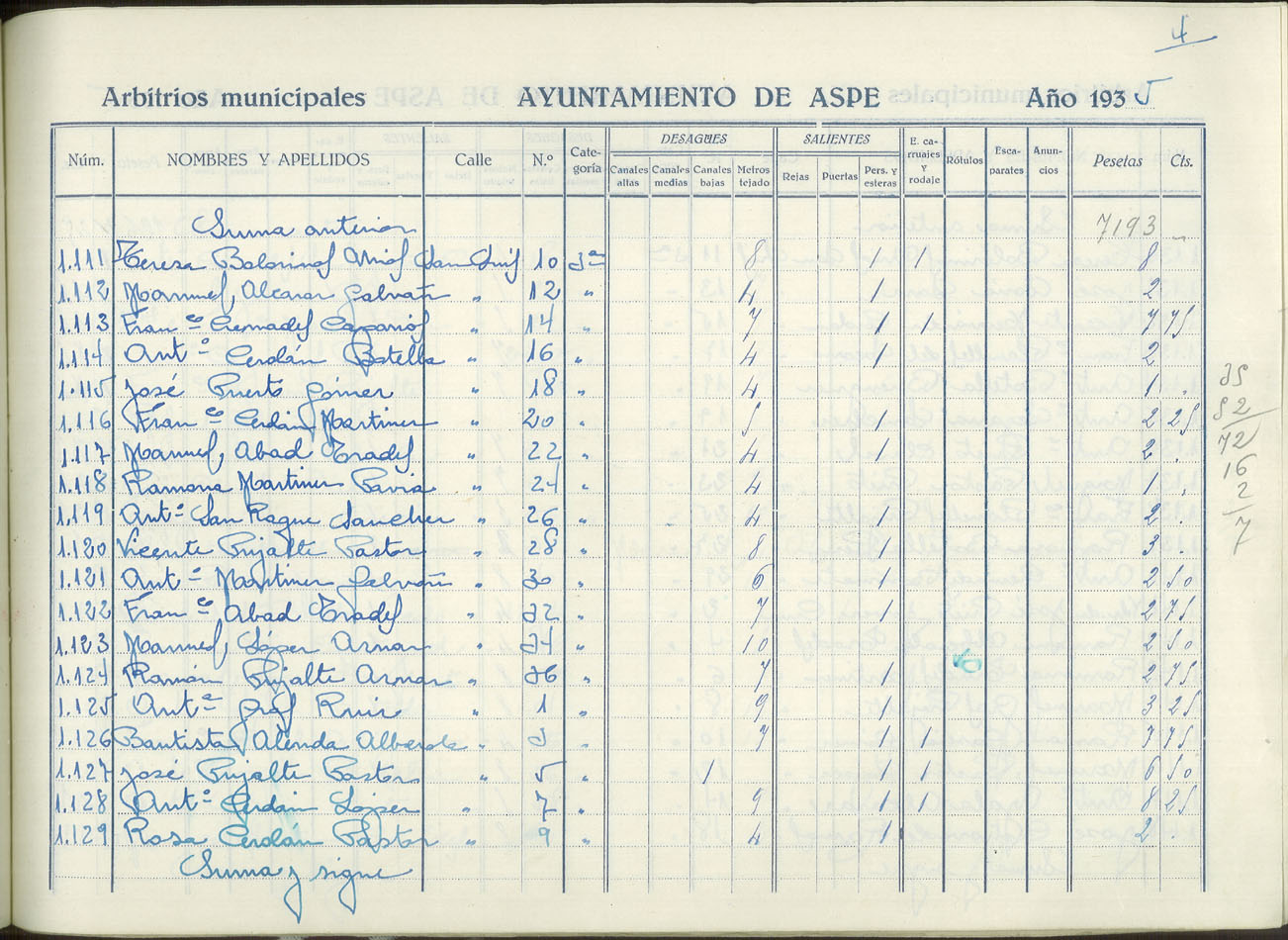 Padrón de personas sujetas al pago de arbitrios municipales, 1935