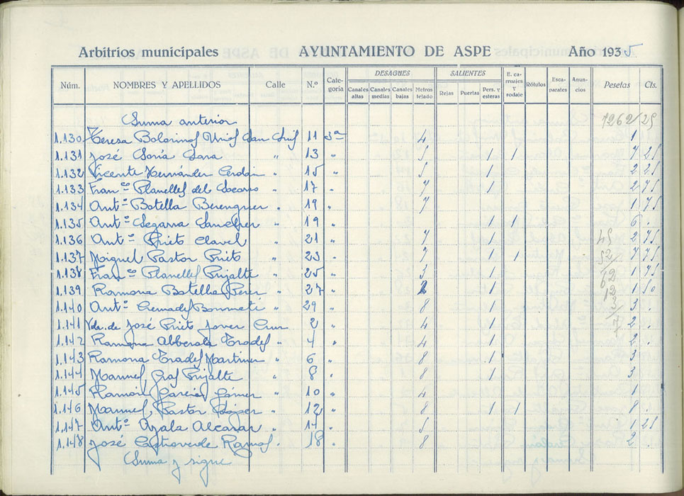 Padrón de personas sujetas al pago de arbitrios municipales, 1935