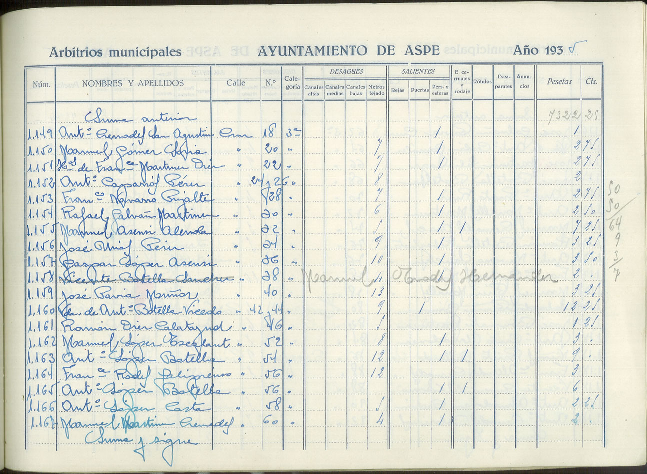 Padrón de personas sujetas al pago de arbitrios municipales, 1935