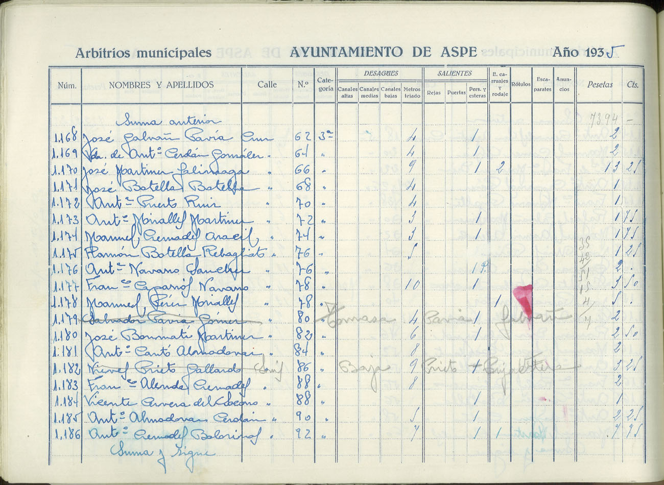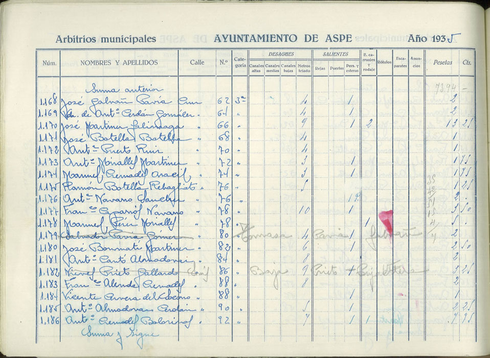 Padrón de personas sujetas al pago de arbitrios municipales, 1935